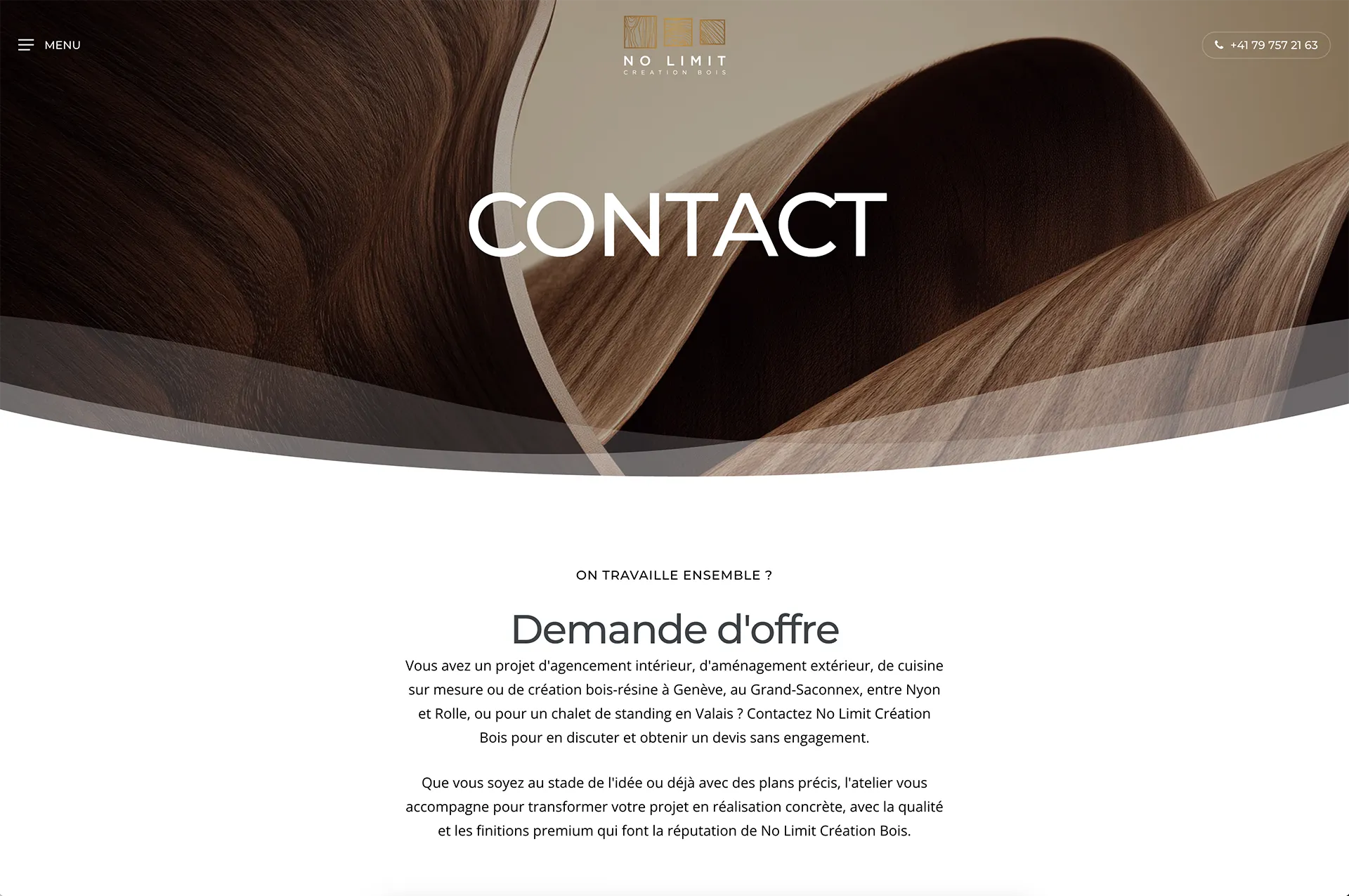 En reprenant un site inachevé et en le reconstruisant avec des outils pros, du contenu travaillé et un vrai univers visuel, j’ai créé pour No Limit Creation Bois une vitrine digitale aussi solide et précise que ses meubles sur mesure.